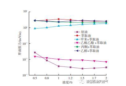 原油中活性物质与碱作用下对界面张力的影响