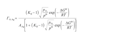 将式(32)代入式(39)中,可以得到表面过剩量关于温度和氧气压力的表达式,即: