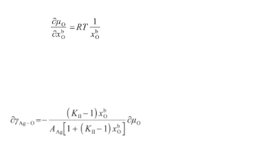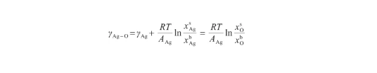 式中,xβ,O为液态Ag-O系中的O原子浓度(at%)。