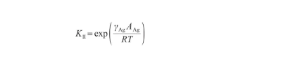 Ag-O系固-液转变过程进行到一定限度时,系统达到平衡,自由能不再发生变化,且为最小。同时,固态、液态中的Ag原子浓度也不再发生变化,平衡系数KI表示为: