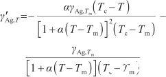 式中,Tc表示液态Ag的临界温度(K),γAg,Tc表示临界温度下的表面张力,并且γAg,Tc=0。由此得到比例系数k的表达式,即: