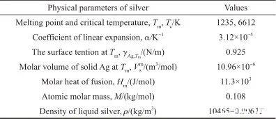 式中,Hm为Ag的摩尔熔化热(J/mol)。