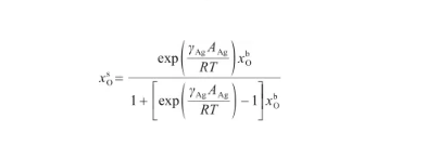 根据式(24),可以将表面相的O原子浓度x表示为: