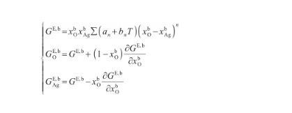 式中,GE,b表示Ag-O系的摩尔过剩自由能(J/mol),n,an和bn均为待定参数,可以通过相图计算获得。