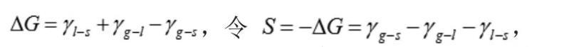 其中,ΔG为Gibbs自由能的变化值,S为铺展系数,γg-s为气-固界面张力,γg-l为气-液界面张力,γl-s为液-固界面张力。如果若S≥0,说明液体可以在固体表面自动铺展。