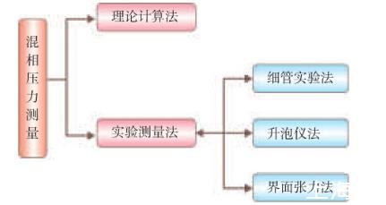 目前测量混相压力的方法如图3所示。国内外许多专家研究了确定最小混相压力的方法,包括理论计算和实验测定。但是,一般的理论计算精确度都不高,而实验测定方法具有较高的可靠性。实验测定方法包括细管实验、升泡仪法及界面张力法等。其中,界面张力法是通过直接测定注气相与地层原油间的界面张力来确定最小混相压力,既能观测到形成混相的状态,而且操作时间也较短。细管实验法被认为是最可靠的测量最小混相压力方法,但细管实验也有局限性,不能模拟黏性指进、重力超覆等因素,实验周期长,大约需要7~14天,且实验工作量大。升泡仪法是直接观察混相过程,测量周期短,1h可以完成测量,测量结果受人为因素影响严重。而界面张力法是通过直接测定注气相与地层原油间的界面张力来确定最小混相压力,既能观测到形成混相的状态,而且操作时间也较短,仅需5~6h。
