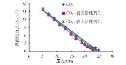 图4表面活性剂对CO2与大庆原油混相压力的影响