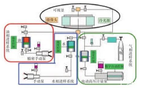 润湿性及界面张力仪主要包括常温常压型、高温型、超高温型、便携型,其中高温高压型润湿性及界面张力仪能够真实模拟油藏条件测量接触角和界面张力。为了扩展高温高压润湿性及界面张力仪可以测量二氧化碳与原油最小混相压力功能,且可以使常温凝固的稠油等样品,实现顺利进样测量和测量,需要对现有设备进行改造。通过增加高温高压气体进样系统,改进原有油相、水相进样系统,使其功能得到扩展。