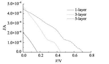 图5不同层数菠菜类囊体膜LB膜组装成光电池的I-V曲线