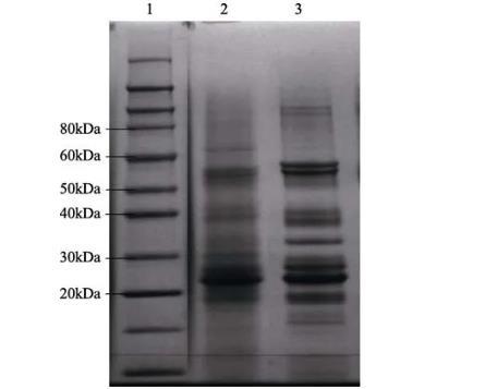 SDS-PAGE分析在NuPAGE 4%~12%Bis-Tris Mini Gel预制胶(Invitrogen,USA)上进行。在样品中加入NuPAGE LDS sample Buffer和NuPAGE Reducing Agent(Invitrogen),70℃加热10 min,短暂离心后上样,每孔道上样20μL,200 V恒电压电泳。凝胶用考马斯亮蓝R-250染色。