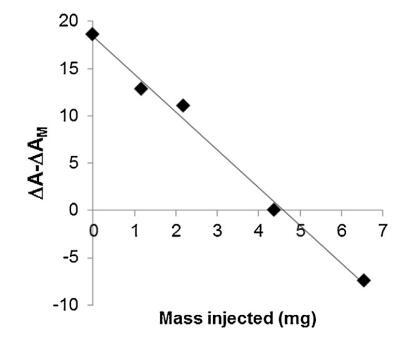 图 6. 相对面积随注射脂质体质量的变化 进入亚相。 线性回归是通过 R2 为 0.992 获得的。