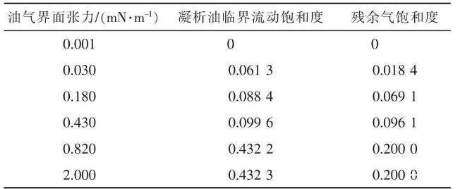 2)建立了基于界面张力影响的凝析油气临界流动饱和度模型。模型量化了界面张力对凝析油气临界流动饱和度的影响,能表征随界面张力增大凝析油气临界流动饱和度增大的特征,使得凝析气藏变界面张力的渗流机理更清晰。
