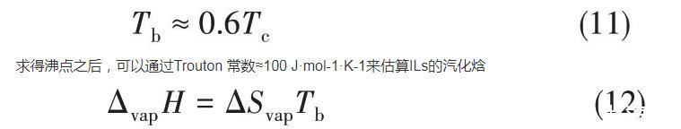 2008年,Verevkin[71]开发了一种基于经验公式的简单相加法来计算ILs的蒸发焓,该焓被分解为构成元素的主要成分和辅助成分的校正(基于结构上的特殊性,例如CF3基团或环状结构的存在)