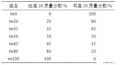 表1各组明胶成膜溶液所添加表面活性剂比例