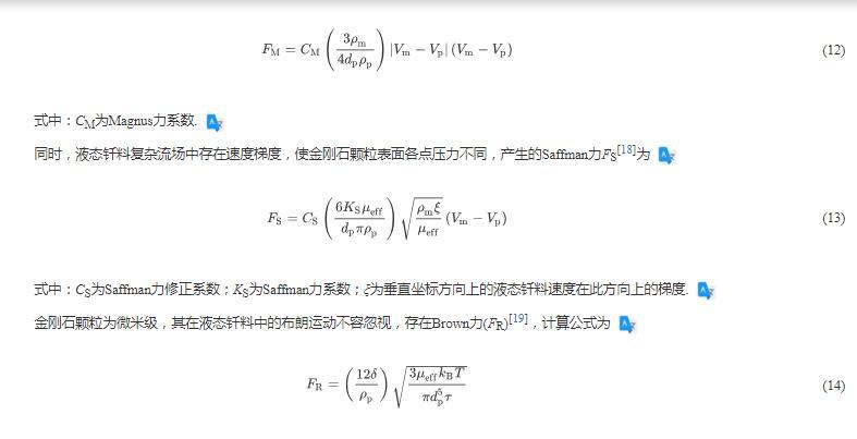 金刚石颗粒相对液态钎料做加速运动,带动或推动颗粒周围液相做非恒定运动,产生附加质量力,计算公式为