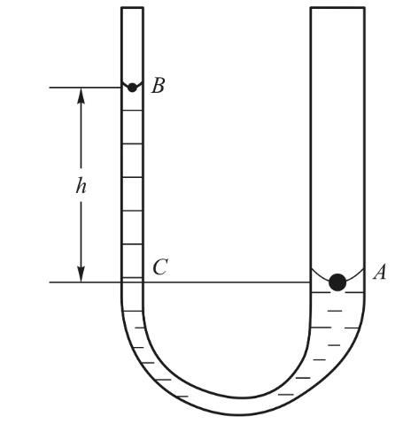 pc为液面下C点处的压强。此外,在流体静力学中,当液体静止时U型管内液面下A点与同水平面的C点压强相同,即Pa=Pc.所以综合以上各式可得
