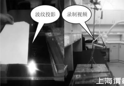 图4产生波纹投影的水槽(左)和录制视频的手机(右)