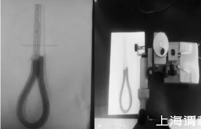 为降低实验成本,使实验便于推广,实验中利用橡胶软管和两根内径不同的玻璃管自行制作U型管。首先取两根内径不等的长约20 cm的直玻璃管,一根长20 cm的橡胶软管。用读数显微镜分别测量玻璃管的内径,记为D1、D2.然后用蒸馏水将玻璃管和橡胶管洗净,然后用橡胶管将两根玻璃管连接起来,组成不等径U型管。实物图如图2所示。