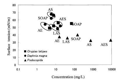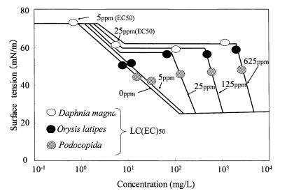 水稻和大水蚤的gtox值很大 因表面活性剂的种类而异。 结果,很明显,一个 表面活性剂的急性水生毒性不能简单地 与表面活性剂溶液的表面张力有关, 忽略表面活性剂的种类。