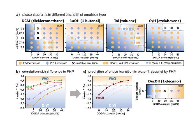图5.Flory−Huggins参数允许预测不同油/水乳液体系的相反转