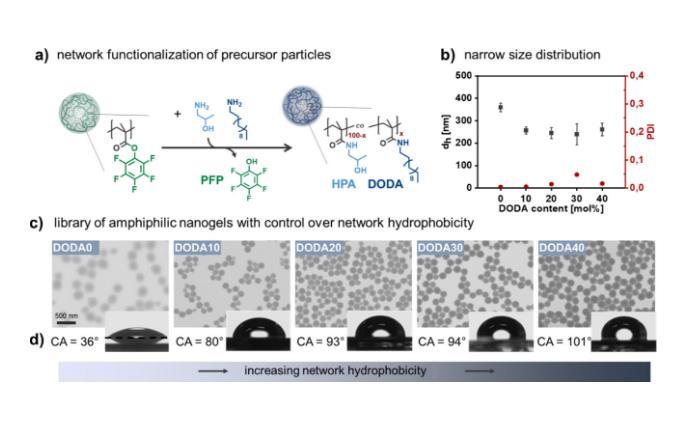 图1.具有不同网络疏水性但类似胶体性质的两亲性纳米凝胶库