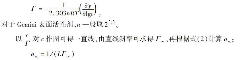根据Gibbs吸附等温式及表面活性剂的酌-lgc曲线,可求得吸附量祝: