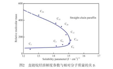 图2直链烷烃溶解度参数与相对分子质量的关系