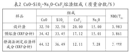 表2 CaO-SiO2-Na2O-CaF2熔渣组成(质量分数/%)
