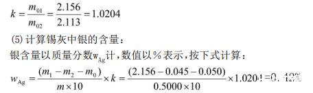 银含量以质量分数wAg计,数值以%表示,按下式计算: