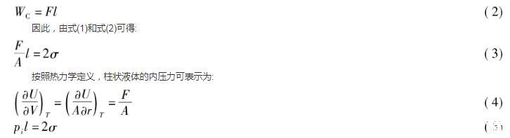 将式(10)代入式(9)即得式(7),其中V=Al。这就是说,将图2所示柱状液体拉开至分子间的有效作用距离l,就相当于将体积为A×l的柱状液体的内聚能转变成了液体的表面自由能,而这种液体则是非极性或弱极性的。