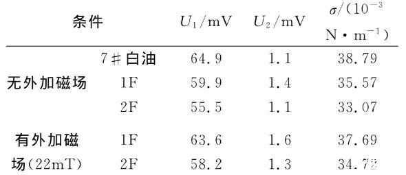 表2磁性液体及7#白油表面张力