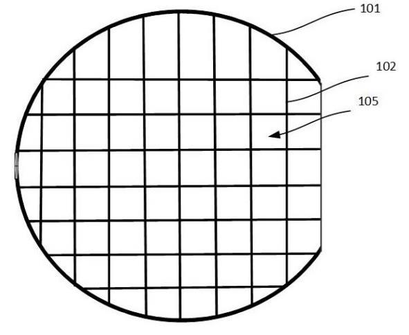 步骤2),依次对各组中的腐蚀区域105内的晶圆104表面进行腐蚀,直至完成整片晶圆104的腐蚀。