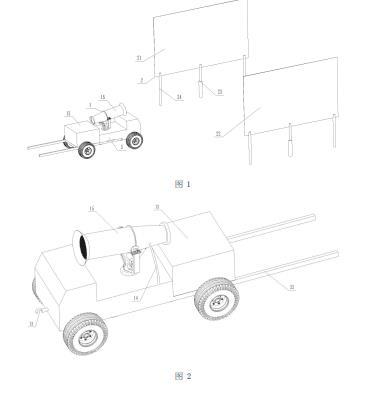 所述绝缘水箱13内具有喷雾用的水体,所述绝缘水箱13分别与加压装置12、管道14连通,所述喷雾头15设置在管道14的末端;所述喷雾头15悬空设置在公路上方;所述绝缘水箱13内设置有导电片,所述导电片与正电荷发生装置11电性连接并使得水体经由喷雾头15喷出的液滴带有正电荷;
