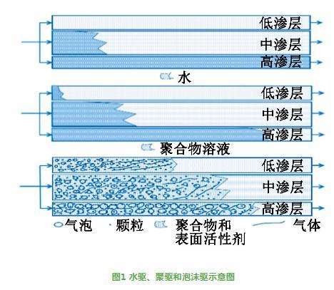 图1水驱、聚驱和泡沫驱示意图
