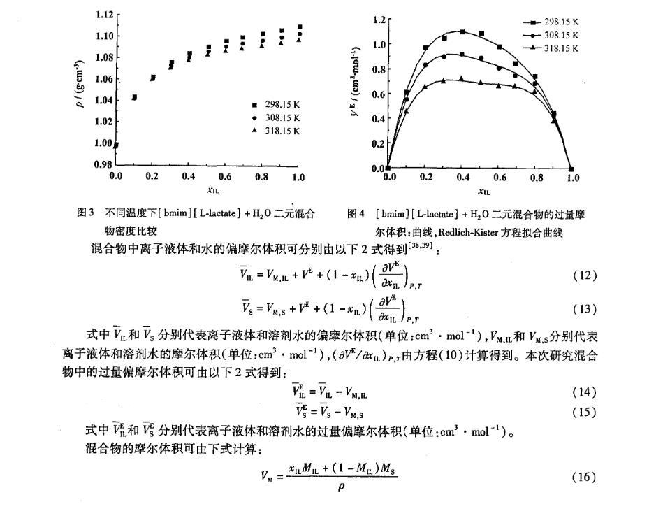2.3[bm im][L-lactate]+H2O二元混合物的体积性质
