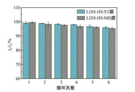 图7两种不同的LDH-HS/染料LB膜的循环稳定性表征