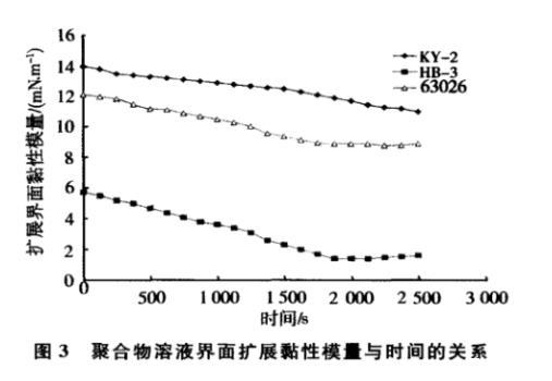 图3聚合物溶液界面扩展黏性模量与时间的关系