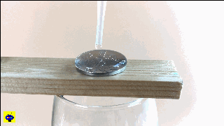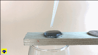 正是由于这个力,硬币上的水滴能够凸起来,在极限值到来之前,液滴都不会倒塌。