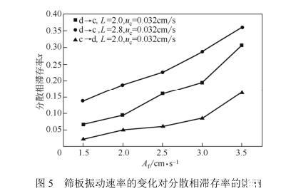 图5筛板振动速率的变化对分散相滞存率的影响