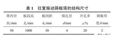 表1往复振动筛板塔的结构尺寸