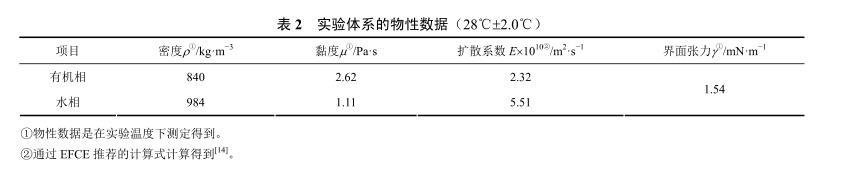 表2实验体系的物性数据(28℃±2.0℃)