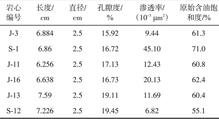 式中:σ—油水界面张力,mN/m;φ—多孔介质的孔隙度,%;K—多孔介质的渗透率,10-3μm2;Δρ—油水密度差,g/cm3;H—多孔介质的高度,cm;C—与多孔介质的几何尺寸有关的常数,圆形毛细管为0.4。