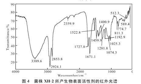 菌株XH-2所产生物表面活性剂的红外光谱如图4所示。