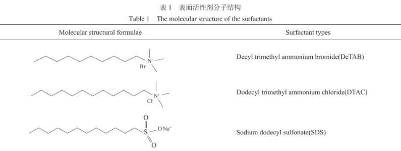 表1表面活性剂分子结构