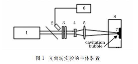 当探测光束通过靶面焦点正前方与空泡或冲击波相互作用时将产生微小的改变,原光束传播方向也将发生偏转,因此耦合进光纤传感器的光强将减小。由于光通量的变化体现为光电流或电压的变化,因此空泡泡半径的演变可以从数字存储示波器上的电压变化反映;图2(b)为探测空泡溃灭对固壁面空蚀作用的实验装置。在脉冲激光作用下,靶材作用点的背面将产生微小的锥形突起,因此光束反射时相对原有反射光路要偏转一定的角度。当探测光束照在因激光作用而形成凸起的锥形上,且光斑中心与锥心重合时,反射光束变为一环形光斑,耦合进光纤的光通量会变小。因光通量的变化体现为光电流或电压的变化,因此靶材所受力的变化可以从数字存储示波器上的电压变化来反映。该光纤传感器的相关测试原理分别见参考文献。本实验触发信号由光电二极管17(上升时间100ps)获取激光反射光来实现。