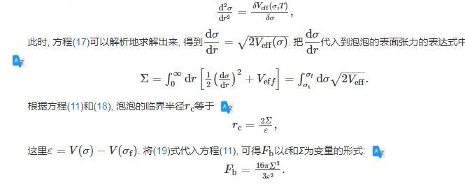 其中,ε为伪真空与真真空的单位体积自由能密度之差;Σ是泡壁的表面能量密度,即两相界面的表面张力。
