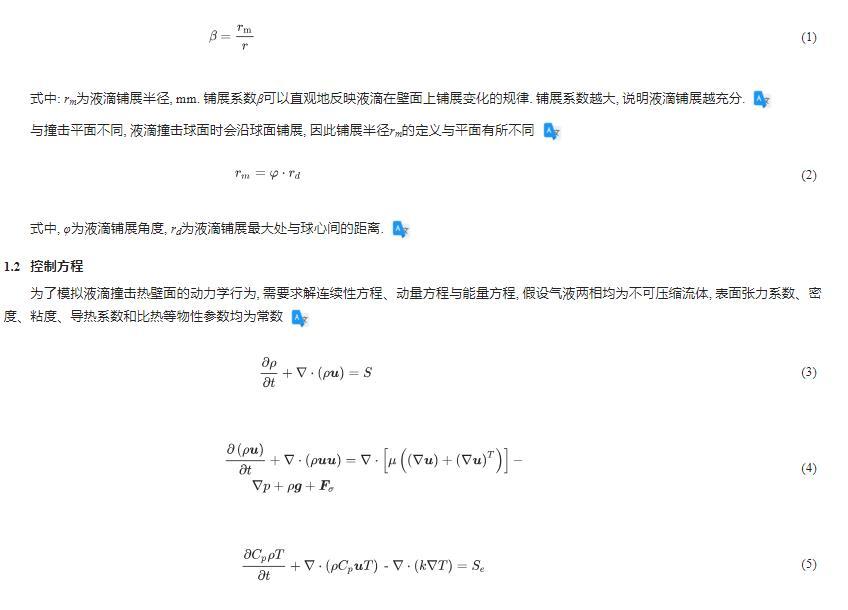 液滴撞击固体壁面是一种常见的物理现象,广泛应用于喷墨打印、等离子喷涂、喷雾冷却、金属淬火和抑冰等领域。液滴与固体壁面的相互作用是影响上述应用的重要因素,如墨滴撞击纸张的铺展特性会影响喷墨打印的分辨率,液滴与壁面的接触时间会影响喷雾冷却的效率,而抑冰又要求减少液滴与壁面的接触时间。类似的情况还有许多,尽管很多学者已经开展了大量研究,但液滴与壁面的相互作用仍因其复杂性与多样性而未被全部知晓。