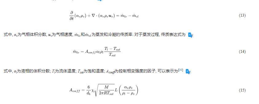 和为蒸发和冷凝的传质率。对于蒸发过程,传质表达式为