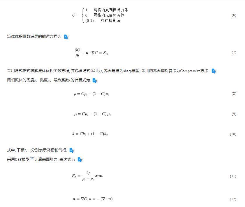 采用隐式格式求解流体体积函数方程,并包含隐式体积力,界面建模为sharp模型,采用的界面捕捉算法为Compressive方法。