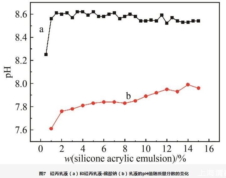 图7硅丙乳液(a)和硅丙乳液-硫酸钠(b)乳液的pH值随质量分数的变化